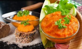 Jätä pavut etukäteen yön yli veteen. Keitä sitten pehmeiksi (60-80 minuuttia). Hienonna sipulit, pilko paprikat, raasta porkkanat ja hakkaa tomaatit tehosekoittimella.