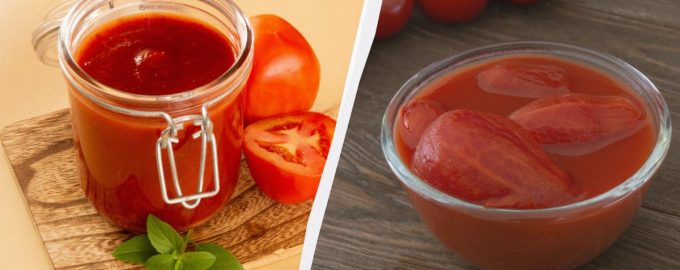Tomaatit tomaattimehussa – erittäin maukas valmiste, kätevä tomaattiruokien valmistukseen.