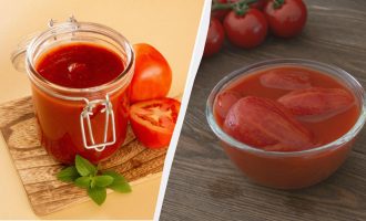 Hienonna tomaatti, lähetä se paistinpannulle, lisää tomaattipyree, suola, pippuri, hauduta kaikki.