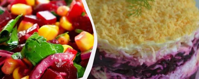 Keitä punajuuret kypsiksi, jäähdytä ja kuori ne. Leikkaa pieniksi kuutioiksi ja laita salaattikulhoon. Lisää viipaloidut sipulirenkaat tai punasipuli, hienonnettu valkosipuli ja yrtit, maissi. Täytä salaatti kasviöljyllä, suolalla, pippurilla, sekoita. Tämä on loistava vaihtoehto, miten valmistaa salaatti punajuurella, jos sinulla on vähintään aikaa ja tuotteita – kaikki mitä tarvitset on jokaisen emännän ruokakomerossa.